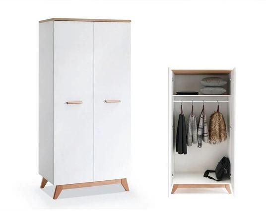 Skriňa má dvojité dvere, za ktorými sa nachádza šatníková tyč. Je vyrobená z kvalitnej laminovanej dosky LTD, vďaka ktorému je odolná voči poškriabaniu, oderom, blednutie a krátkodobému pôsobeniu vody. Je opatrené tiež hranou ABS, ktorá zabraňuje možnému poškodeniu. Vysoké nôžky skrine a úchytky sú vyrobené z masívneho dreva.