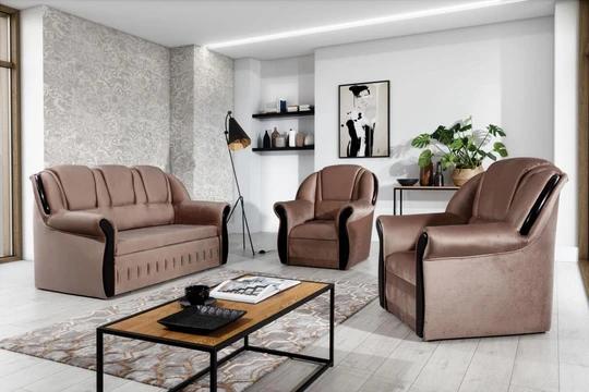 Skladá sa z trojpohovky a dvoch kresiel, ktoré poskytnú skvelú oporu pre vaše unavené telo. Trojpohovka je rozkladací a ponúka štedrý úložný priestor na všetko, čo práve nemá byť na očiach. Zadná časť pohovky a kresiel je čalúnená.
