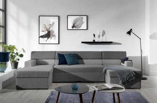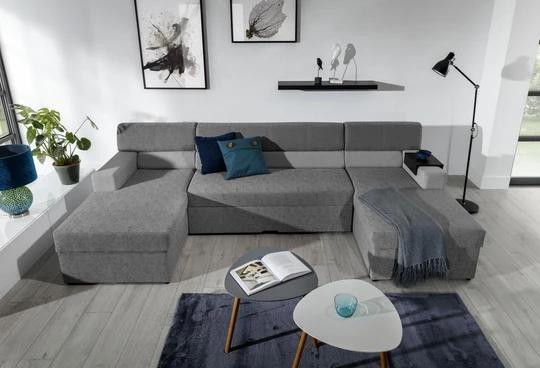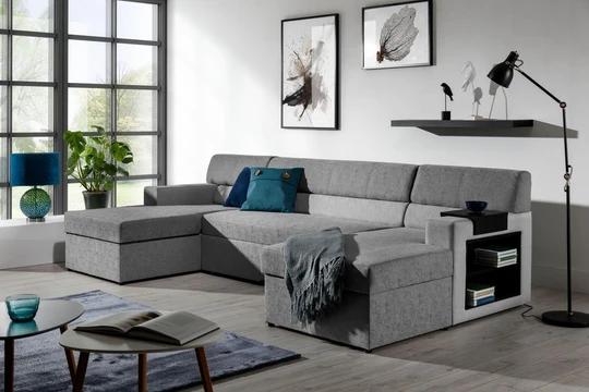 MAX rozkladacia sedacia súprava v tvare U s knižnicou a odkladacou policou