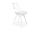 Dizajnová stolička vyrobená v bielej/priehľadnej farbe. Sedák je čalúnený eko kožou.
