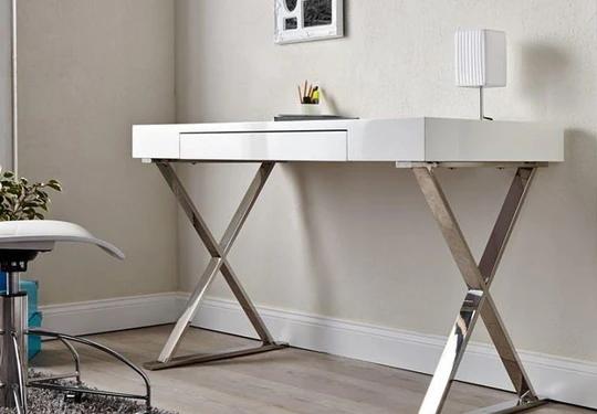 Písací stôl do pracovne v jednoduchom industriálnom dizajne s vysokým leskom.