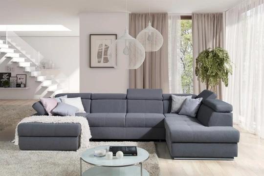 FABIOLA U moderná rozkladacia sedacia súprava do U s regulovateľnými opierkami hlavy a lakťov
