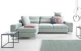 Súprava Dory ponúka na výber stranu rohové časti a možnosť meniť druh a farbu látky podľa vlastných predstáv.