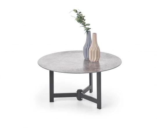 TWINS guľatý sklenený konferenčný stolík s kamenným vzhľadom