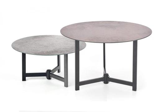 Moderné riešenie pre štýlové obývacie priestory. Dva okrúhle stolíky v sete TWINS do seba dokonale zapadajú, takže ich môžete ľahko prispôsobiť aktuálnym potrebám – či už hľadáte kompaktnú zostavu alebo väčšiu plochu na občerstvenie alebo dekorácie. Sklenená horná doska s kameninovým efektom pôsobí sviežo a netradične, zatiaľ čo čierna kovová konštrukcia zaistí stabilitu a ľahko industriálny nádych. Ideálna kombinácia praktickosti a designu.