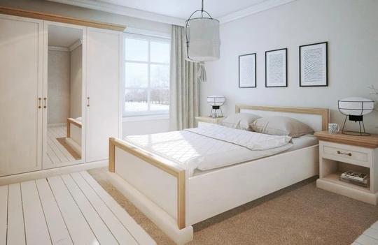 V cene zostavy je veľká šatníková skriňa, posteľ 160x200 cm a 2x nočný stolík.