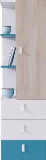 Dobrá modrá v kombinácii s dubovým dekorom, pevným LTD materiálom s jemnými líniami. To sú výrazné prvky tejto detskej zostavy, s ktorou ľahko vytvoríte pohodou a hravú atmosféru.