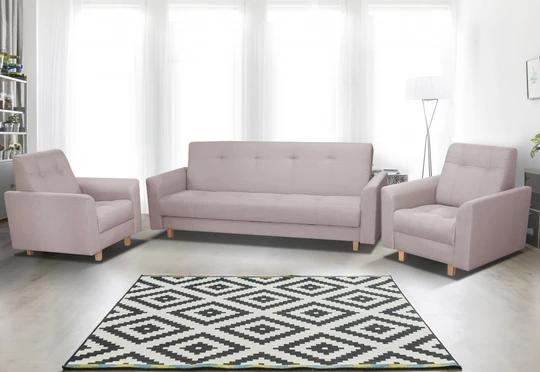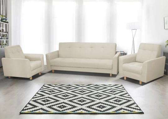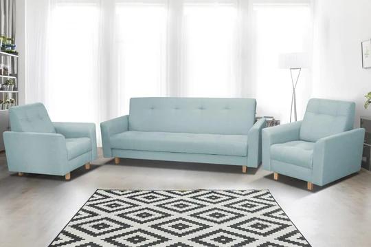 K pohovke možno dokúpiť kreslo (85x85 cm, výška 90 cm) a vytvoriť si tak sedaciu súpravu. Nôžky sú drevené v dekore buk.
