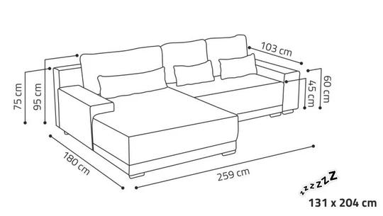 MIDAS MINI rozkladacia rohová sedacia súprava s širokou leňoškou