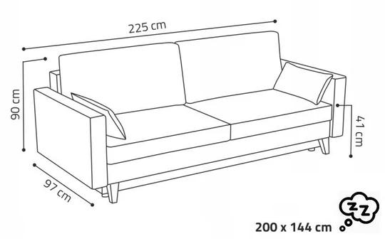 Pohovke nechýba nepostrádateľný úložný priestor a možnosť rozloženia na pohodlné lôžko. Jej súčasťou sú 2 veľké odnímateľné vankúše (na zips) 2 malé dekoračné vankúšiky (bez zipsu).