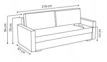 Pohovke nechýba nepostrádateľný úložný priestor a možnosť rozloženia na pohodlné lôžko. Jej súčasťou sú 2 veľké odnímateľné vankúše (na zips).
