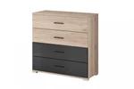 Najväčšou dominantou tohto kompletu je posteľ s čalúneným čelom, ku ktorej možno dokúpiť rošt. Skriňa disponuje veľkorysým úložným priestorom a zrkadlom, do ktorého sa budete vždy radi pozerať. V spojení s príslušnou komodou a dvomi nočnými stolíkmi vytvorí z vašej spálne maximálne komfortný a atraktívny priestor. Nábytok je vyrobený z kvalitnej laminovanej drevotriesky, ktorá sa vyznačuje vysokou odolnosťou proti poškodeniu a pevnosťou.