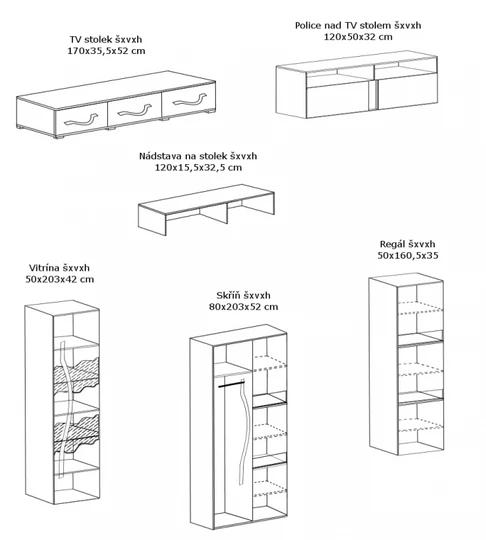 Obývacia zostava San Maríno si získa srdcia predovšetkým obdivovateľov moderného štýlu, ktorí si potrpia na spojenie elegancie s praktickosťou. Disponuje veľkým úložným priestorom, kam môžete schovať všetko, čo práve nepotrebujete. Nábytok je vyrobený z kvalitnej laminovanej drevotriesky, ktorá je funkčná vďaka svojej odolnosti a jednoduchej údržbe.