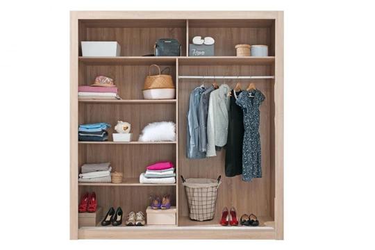 - Šírka 200 cm, výška 215 cm, hĺbka 60 cm – dostatok priestoru pre oblečenie