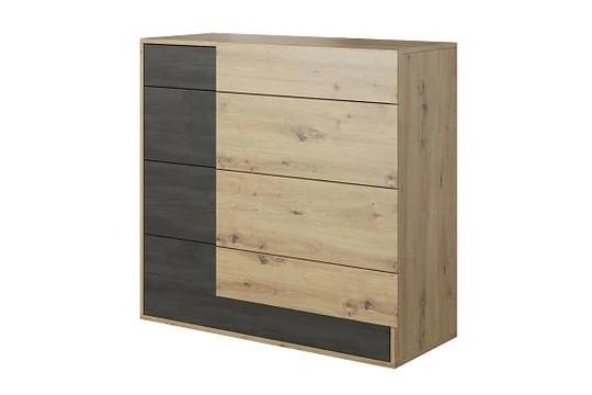 Spálňa je miesto, kde by ste sa mali cítiť pohodlne, uvoľnene a bezpečne. Ale ako takéhoto cieľa dosiahnuť? Elegantná Larnaka v dekore dub artisan / borovica čierna tohle všetko ponúka na striebornom podnose.