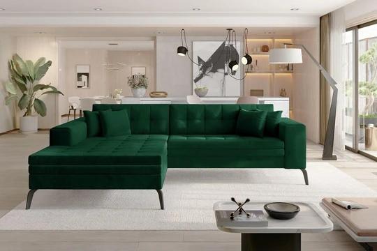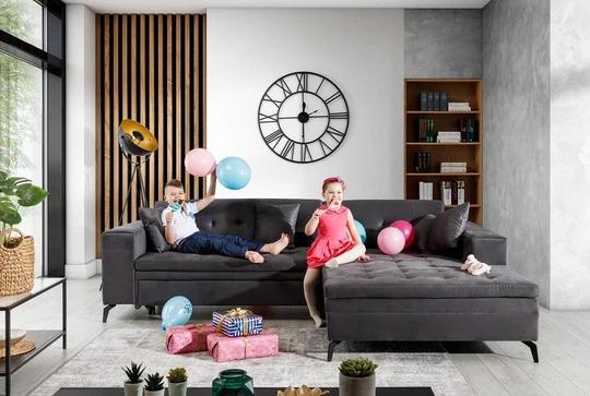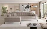 Pri rohovej sedacej súprave Nantes je možné meniť druh a farbu látky tak, aby čo najlepšie zapadla do vašej obývačky.