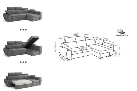 Ide o praktický kus nábytku. Je vybavena funkciou rozkladu, ktorá ponúka rozmer spacie plochy 200x130 cm. Na každodenné spanie ju ale určite neodporúčame. Taktiež jej nechýba úložný priestor na všetko, čo nepotrebujete mať po ruke. Vďaka polohovateľným opierkam hlavy a lakťovým opierkam môžete prispôsobiť komfort sedenia Vašim potrebám.