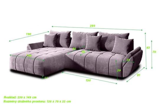 Disponuje úložným priestorom, do ktorého schováte všetko, čo nebudete potrebovať. Ak sa rozhodnete stráviť noc pri televízii, môžete ju rozložiť a získate tým priestor o veľkosti 230x149 cm.