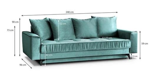 Retro pohovka s funkciou rozkladu a možnosťou následného spánku o ploche 140x200 cm. Súčasťou pohovky je aj úložný priestor.