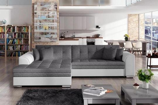 Medzi výhody bielo-šedé priestrannej sedacej súpravy nepatrí len dizajn, ale aj kráľovský relax. Vo svojom repertoári ukrýva rozkladací funkciu, ktorú získate spacie plochu o 237x127 cm. Nemá však úložný priestor.