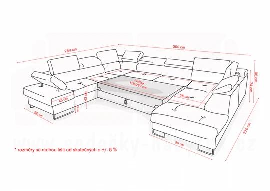 SANDET MAX I veľká rozkladacia sedacia súprava do U s polohovacími záhlavníkmi