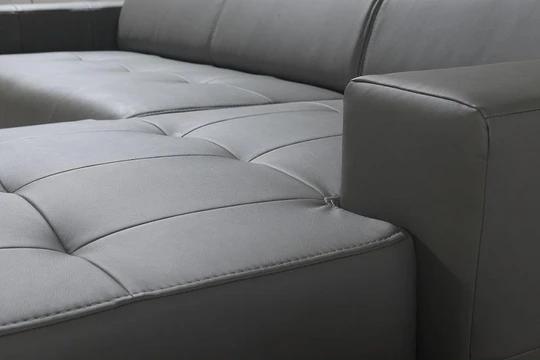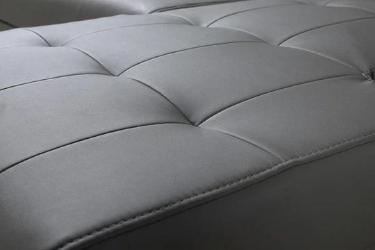 Zadní strana je čalouněná, také ji můžete umístit do rohu i středu místnosti. Nožky jsou chromované.