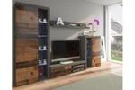 Obývacia stena sa skladá z televízneho stolíku, dvoch vitrín a police. V prípade potreby úložného priestoru navyše možné dokúpiť tiež príslušná komoda. Nábytok je vyrobený z kvalitného lamina, ktoré je veľmi odolné voči mechanickému poškodeniu (pr. poškriabanie), vlhkosti a nepodlieha času.
