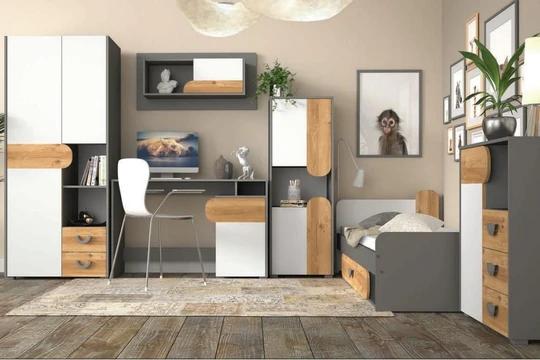 Vitrína 1 je súčasťou modernej študentskej zostavy MONREALE, ktorá je navrhnutá tak, aby zodpovedala nárokom ako začínajúcich puberťákov, tak uspokojila potreby študentskej izby.