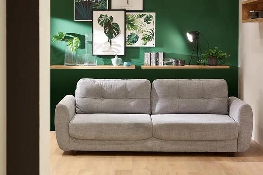 Zadná strana je čalúnená, takže ju môžete umiestniť do rohu aj stredu miestnosti. Pohovka ponúka možnosť meniť druh a farbu látky podľa svojich preferencií. Na výber máte aj dekor nôžok a to NATURAL alebo WENGE.