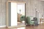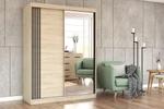 Vďaka posuvným dverám vám skriňa nezaberá miesto navyše. Skriňa je rozdelená na dve časti, vybavená niekoľkými policami, šatníkovou tyčou. Zrkadlo vám pomôže vychytať posledné detaily pri obliekaní.