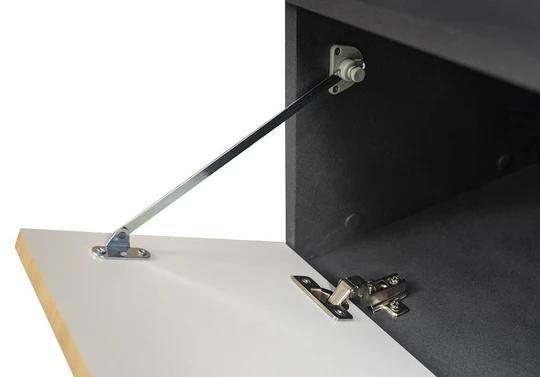 Ozdobné lamely na predných dvierkach dodávajú nábytku veľkolepý efekt. Okraje sú chránené odolným melamínom.