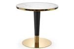 Vďaka malým rozmerom je stôl ideálny do menších miestností, kde nie je miesto na väčší nábytok. Doska stola je ozdobená dekorom bieleho mramoru a zlaté prvky mu navyše dodávajú jedinečné kúzlo.