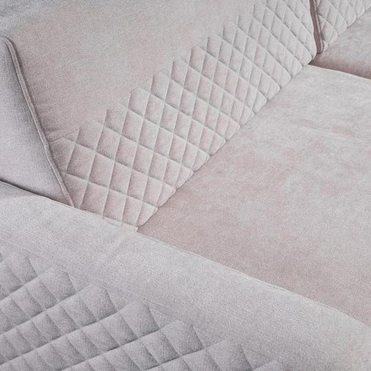 Pohovka je vyplnená kvalitnou PUR penou T3038, ktorá je synonymom pre pružnosť, prispôsobivosť a dlhoročnú výdrž. Pružina typu faliste zvyšuje jej komfort a celkovo podporuje funkciu peny. Zadnú stranu má čalúnenú, takže ju môžete umiestniť do rohu aj stredu miestnosti. Nôžky má kovové - zlaté.