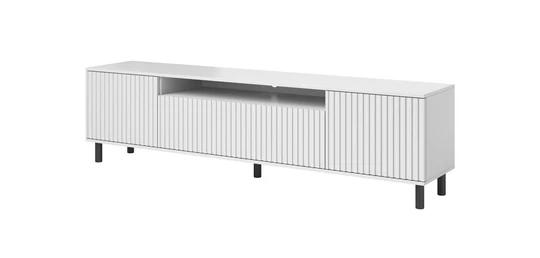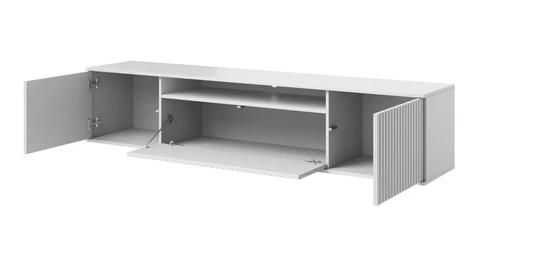 Moderná TV komoda pod televíziu s frézovanými dvierkami.