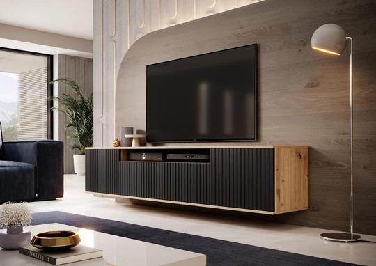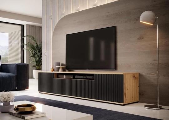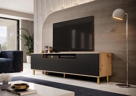 Moderná TV komoda pod televíziu s frézovanými dvierkami.