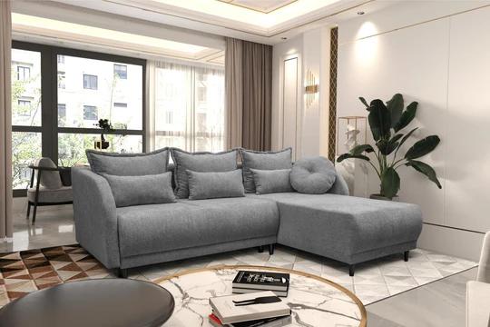 Táto krásna rohová sedačka je s úložným priestorom a rozkladacou funkciou. Rozklad je pomocou systému DL, ktorý spočíva v miernom posunutí sedačky k sebe a sklopení chrbtovej opierky.