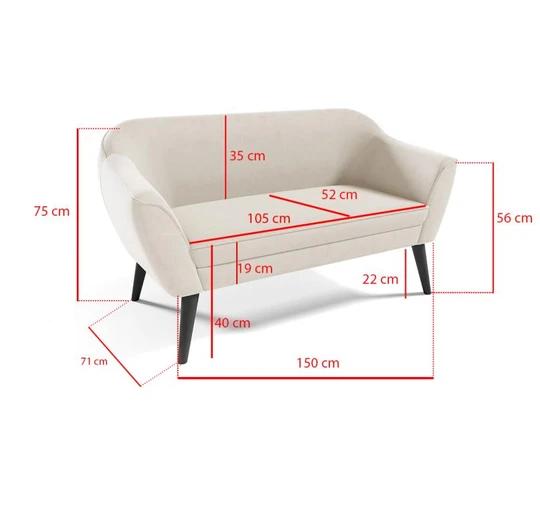 Vďaka kvalitnému polstrovaniu ponúka pohovka Jackie komfort, ktorého sa nebudete chcieť vzdať. Zaoblený chrbát je doplnený dizajnovým lemovaním a prešitím. Vysoké nôžky z bukového dreva dodávajú pohovke na vzdušnosti a praktickosti, pretože sa pod ňou ľahko dostatočne napríklad vysávačom. Nôžky sú k dispozícii v troch dekoroch. Výplň tvorí PUR pena a pružiny typu faliste.