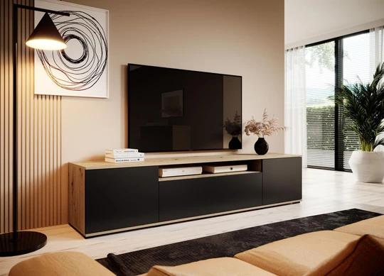 Moderná TV komoda WADE pod televíziu v dekore dub artisan/čierny.