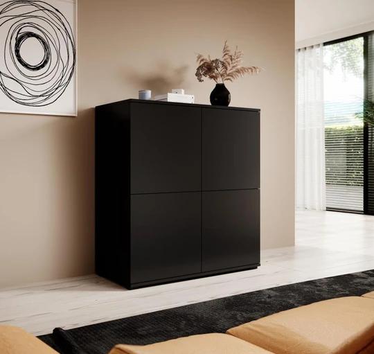 Komoda má systém otvárania push to open, čo znamená, že stačí jemné zatlačenie a dvierka sa pootvoria do polohy, aby ich bolo možné uchopiť.
