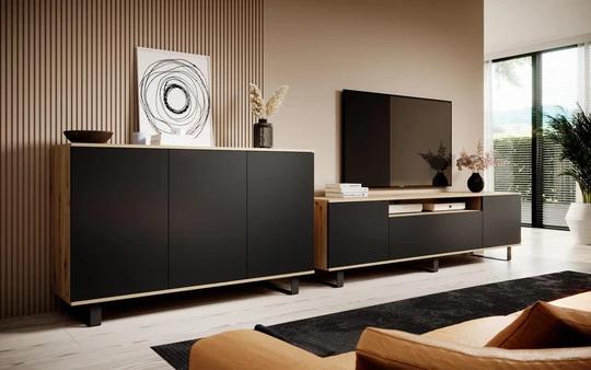 Moderná komoda WADE 3D v dekore dub artisan/čierny.