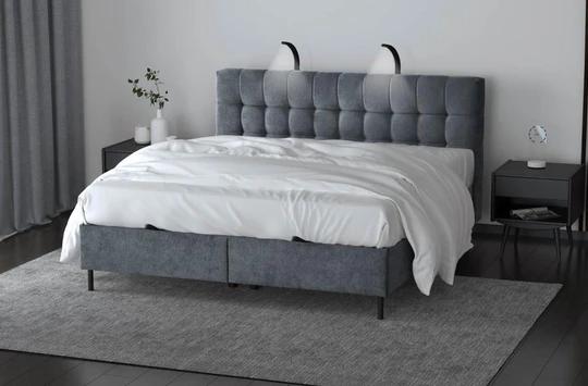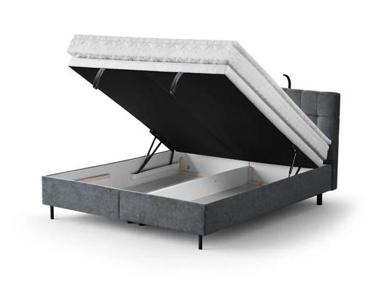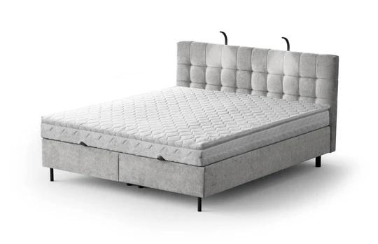 Posteľ má navyše úložný priestor, ktorý sa otvára za pomoci plynových piestov. Jej súčasťou sú aj dve kovové lampy v čiernej farbe s možnosťou regulácie. Osvetlenie je vo svetlej farbe. Nabíja sa cez USB.
