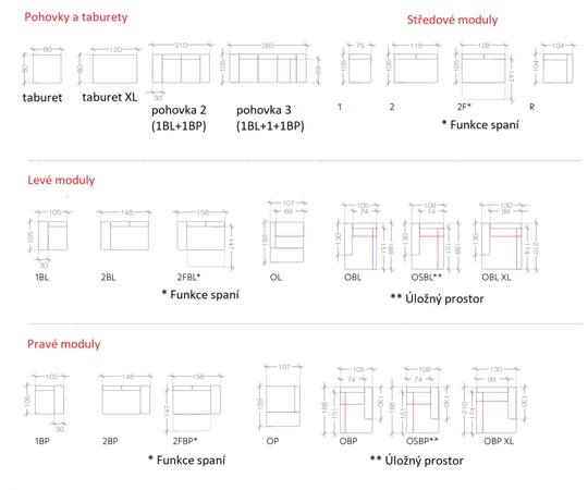 Pri súprave je tiež možné meniť druh a farbu látky tak, aby čo najlepšie zapadla do vašej obývačky.