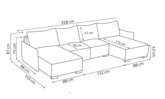 Sedačka disponuje úložným priestorom, do ktorého schováte všetko, čo nebudete potrebovať. Pokiaľ sa rozhodnete stráviť noc pri televízii, môžete ju rozložiť a získate tým priestor o veľkosti 140x305 cm.