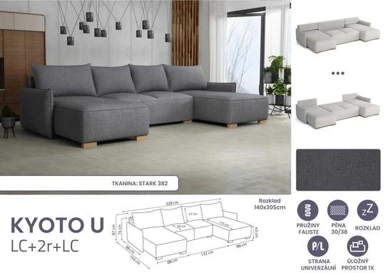 KYOTO U rozkladacia sedacia súprava v tvare U s úložným priestorom