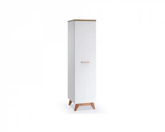 Skriňa má jedny dvere, za ktorými sa nachádzajú 3 police. Je vyrobená z kvalitnej laminovanej dosky LTD, vďaka ktorému je odolná voči poškriabaniu, oderom, vyblednutiu a krátkodobému pôsobeniu vody. Je opatrené tiež hranou ABS, ktorá zabraňuje možnému poškodeniu. Vysoké nôžky skrine a úchytky sú vyrobené z masívneho dreva.