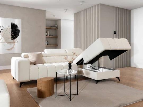 Je vybavená kvalitnými zdvíhacími mechanizmami v úložnom priestore, vďaka ktorým je spôsob otvárania a zatvárania bezpečný av plnej podpore. Funkcia spania navyše zaistí pohodlný odpočinok ako vám, tak vašim blízkym a bude príjemným zážitkom počas každého okamihu stráveného v pohodlí vášho domova. Systém rozkladania je typu "PUMA" - jemné nadvihnutie sedadla do výšky a následné spustenie ťahom dopredu. Matrac bude zarovnaný v jednej línii so zvyškom sedacej plochy súpravy.