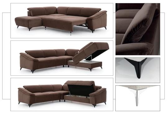 Je vybavená kvalitnými zdvíhacími mechanizmami v úložnom priestore, vďaka ktorým je spôsob otvárania a zatvárania bezpečný av plnej podpore. Funkcia spania navyše zaistí pohodlný odpočinok ako vám, tak vašim blízkym a bude príjemným zážitkom počas každého okamihu stráveného v pohodlí vášho domova. Systém rozkladania je typu "PUMA" - jemné nadvihnutie sedadla do výšky a následné spustenie ťahom dopredu. Matrac bude zarovnaný v jednej línii so zvyškom sedacej plochy súpravy.