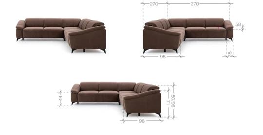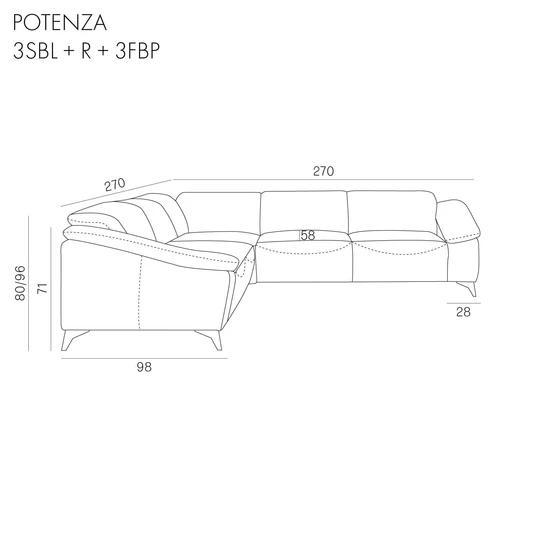 Diely sedacej súpravy Potenza L: 3SBL + R + 3FBP ľavá / 3FBL + R + 3SBP pravá