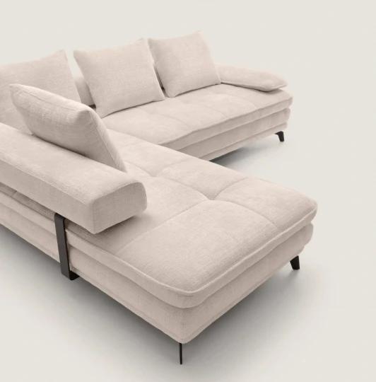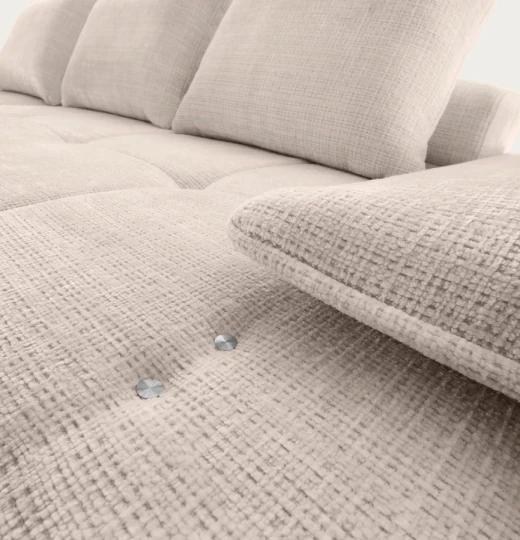 Rohová sedačka Stella má elektrickú funkciu výsuvného sedáku. Dotknite sa tlačidla, ktoré je ukryté pod čalúnenou podrúčkou, a zväčšite alebo zmenšíte hĺbku sedáku.
