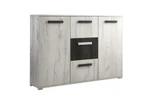 Moderná komoda West je maximálne elegantná v minimalistickom podaní. Ponúka úložný priestor v podobe troch veľkých šuplíkov a dvoch postranných dvierok.